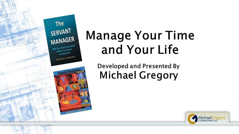 We all only have 168 hours in a week. In this session, Mike allows participants to examine where they spend their time, where they want to spend their time and how to prioritize what is most important to them. Ideas are taken from two of Mike’s books, The Servant Manager: 203 tips from the best places to work in America (2013) and Peaceful Resolutions (2015). After discussing some lessons learned from neuroscience on how our brains work, tips are presented that explore your priorities, goal setting, the SMART model, time management, avoiding common time wasters and procrastination before constructive actionable steps are provided. Tips such as avoiding the stinky twins of BO (blaming others) and BS (blaming self) and overcoming your fears by identifying specific actions, prioritizing your interests and managing your time allow the participant to take constructive actions going forward. These tips provide viewers with the tools they need to bring it all together.