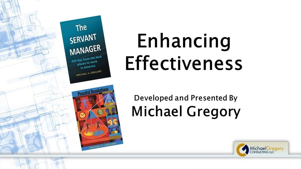 This session presents interactive ideas to help you and your team enhance effectiveness by incorporating ideas from two of Mike’s books, The Servant Manager: 203 tips from the best places to work in America (2013) and Peaceful Resolutions (2015). After discussing some lessons learned from neuroscience on how our brains work, tips are presented that explore what it means to serve over self-interest, invest in each other, bring the right attitude, and to apply the habits of successful people to help you improve as well. Specific tips are presented to enable participants to enhance skills on such topics as communication, trust, delegation, issue resolution, active listening and other topics. These are topics that executive leadership in various size firms from small to large have asked Mike to help them and their employees with going forward. This is a real demand/pull training session.