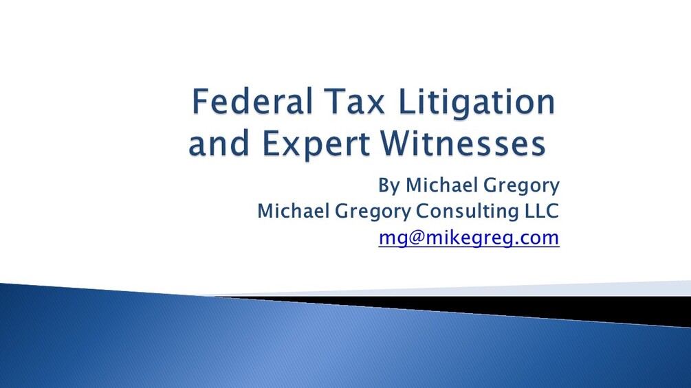 Michael Gregory Institute: Federal Tax Litigation and Expert Witnesses